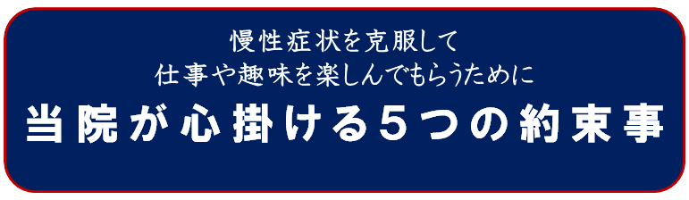 当院を選ばれる皆さまには、痛みや不調のない、質の高い生活を取戻すために以下の5つのことを心掛けてまいります。