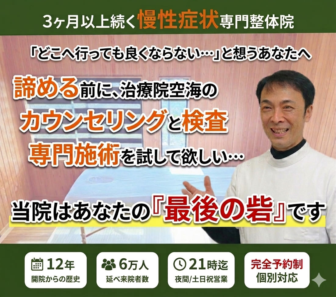 治療院空海は6万人の慢性症状の方々と向き合ってきました。