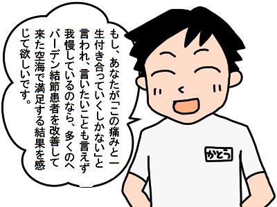 どこへ行っても治らず、ヘバーデン結節の痛みを取る方法はない……と言われる中で、「大丈夫ですよ!」と返答してくれたのは加藤先生だけでした。