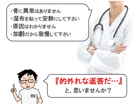 「様子を見ていてください。2~3ヵ月で痛みはなくなりますから大丈夫です」と言われたそうです。