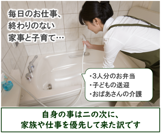 自分の事は二の次で、家族や仕事を優先させる方、優先しなくていけない環境にいる方が多いとも感じます。