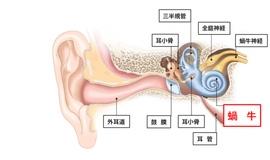 そこには蝸牛と言う音を電気信号に変換する器官があり、届いた振動が電気信号に変えられ、脳に伝わる事で音として認識される仕組みです。