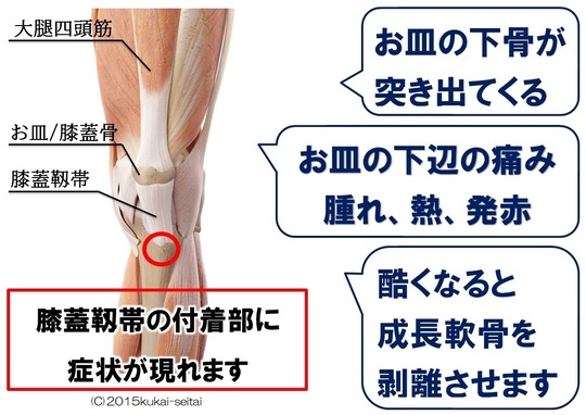 強い外力だけではなく、反復運動をはじめ、走り込み、グリップ力の高いシューズなどは筋肉(ふくらはぎ、太もも)に強い緊張を起こし付着部である膝(軟骨部)が引っ張られる事で炎症が発生します。