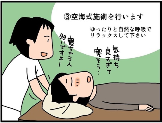 目を閉じ、自然な呼吸を心がけて下さい。施術効果が高まります。