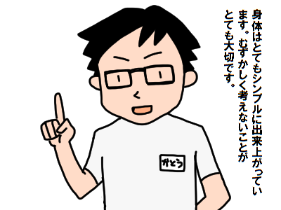ボクは身体を整えるだけの役割です。きっかけを与え整えるだけで身体は自然に回復へ向かいます。回復する過程を感じて頂き嬉しく思います。