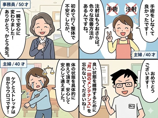 慢性症状が良くなり、『笑顔を取り戻した方』もいれば、『良くならなかった方』もいます。